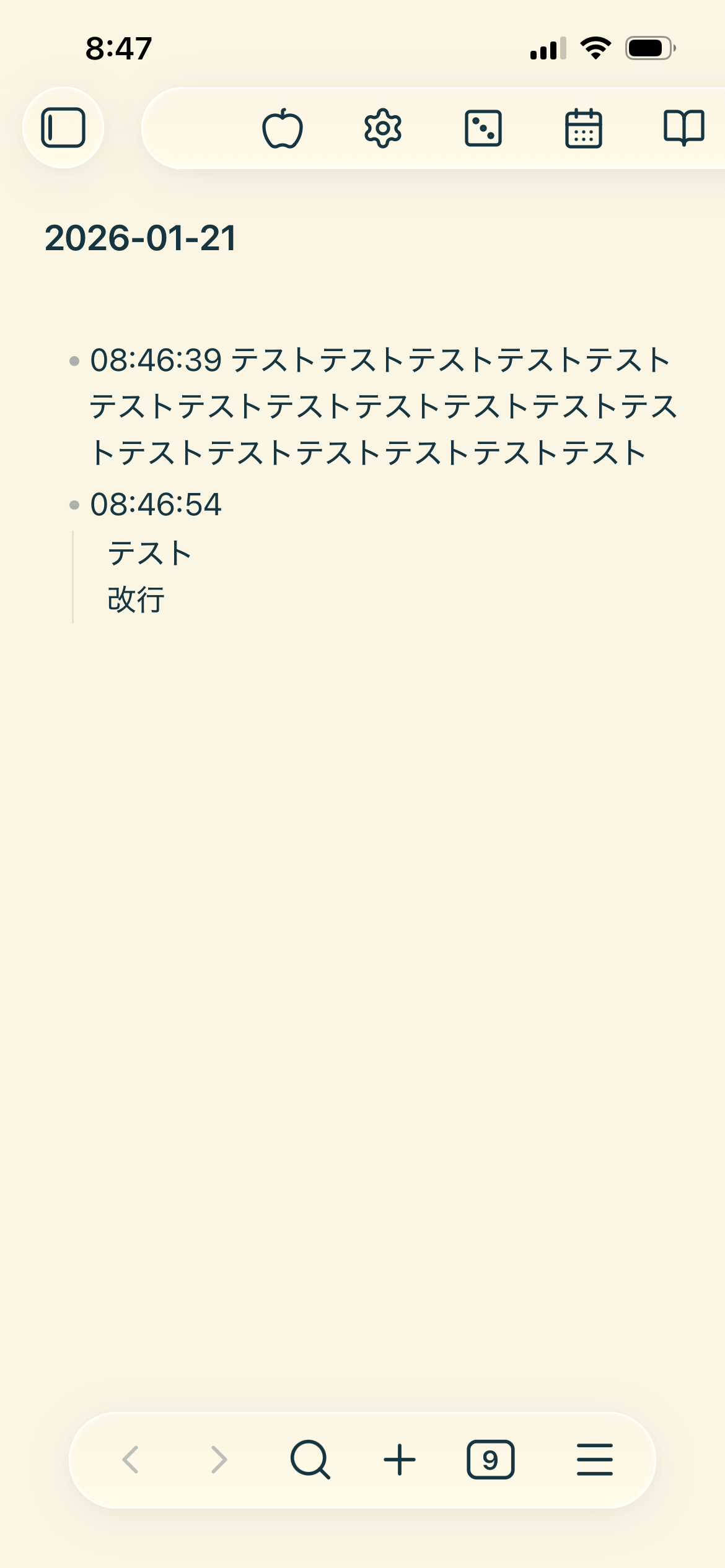 obsidianというローカルメモアプリの、Thinoという拡張機能を使ったものです。