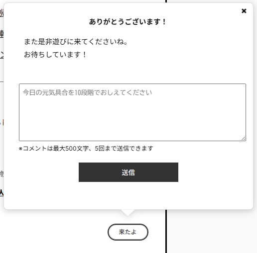 メッセージは文字まで、同一IPアドレスからの送信は一日回まで 現在文字数 0文字